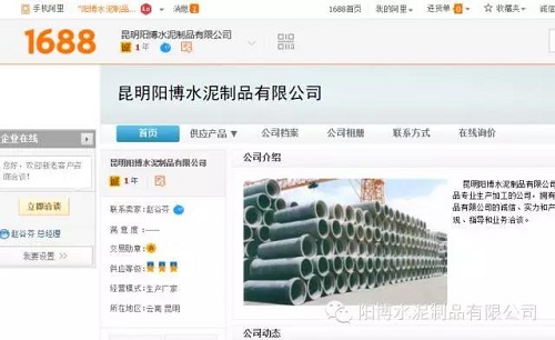 為方便廣大客戶及網(wǎng)絡(luò)線上銷售的需求,我公司已開通阿里巴巴網(wǎng)絡(luò)銷售平臺,歡迎到網(wǎng)店進行產(chǎn)品采購,可享受網(wǎng)絡(luò)價格優(yōu)惠!到阿里巴巴官網(wǎng)搜索昆明陽博水泥制品或訪問網(wǎng)址:shop1457456395215.1688.com 即可找到店鋪。
